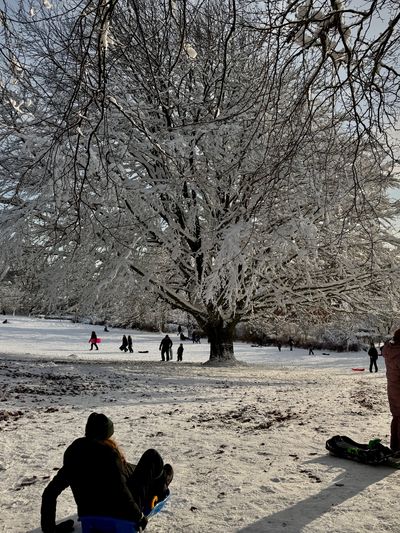 Sneen ligger som et blødt tæppe over græsset og stierne, dæmpende alle lyde og skabende en ro, der næsten kan mærkes i luften. De gamle træer står majestætisk med grene indhyllet i frost, som små krystaller der glimter i det svage januarlys. Fodspor i sneen vidner om liv – børn og deres familier som bruger kælkebakkerne – men ellers hersker stilheden. Det er en dag, hvor naturen selv har malet et billede i hvidt og gråtoner, og hvor man næsten glemmer tidens hast.
